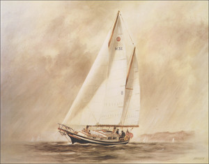 Imagen de pintura al óleo de la costa marítima americana velero velero 1984 impresión vintage