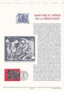 Document Philatélique 1er Jour : 33 1993 - Martyrs et Héros de la Résistance