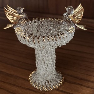 Estatuilla vintage de vidrio soplado a mano para baño de pájaros 2 pájaros detalles transparentes y dorados 12,09 EUR