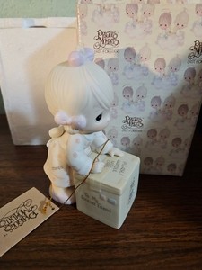 Presious Moments Enesco. 1980 Rejoicing With You. Sostenedor para bebé y niña para niño