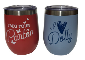 2 tazas Dolly Parton vasos azul y rojo 12 oz copa de vino sin tallo