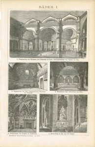 Pizarra ARQUITECTURA / ROMANOS / TERMAS DE CARACALLA / CASTILLO DE ÁNGELES grabado en madera original 1885 5,99 EUR