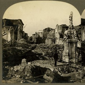 Messine, séisme de 1908 : ruines, place du Dôme - Photo Vue Stéréo Keystone