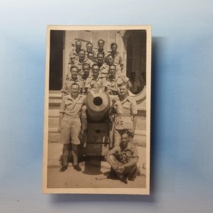 Postal militar de la Segunda Guerra Mundial C1945 foto real St Andrews Malta tropas con cañón