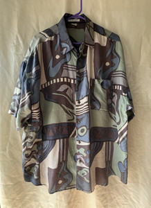 Camisa de manga corta 100 % seda abstracta vintage High Advantage para hombre talla XL