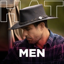 Sombrero de Vaquero Negro de Cuero de Alta Calidad Western Outback Estilo Rodeo Festival