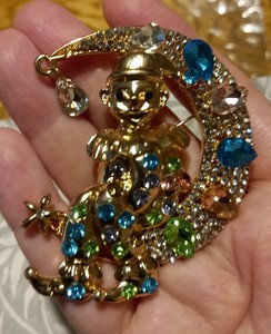Broche Colgante Payaso Media Luna Cuelga Gota Brillo Grande Brillante Glamour Fabuloso