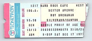 Boleto de concierto de Roy Buchanan 17 de diciembre de 1977 Hartford Connecticut
