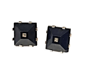Gemelos cuadrados de cúpula de ónix negro Swank de colección con diamantes de imitación al ras central enchapados 15,63 EUR