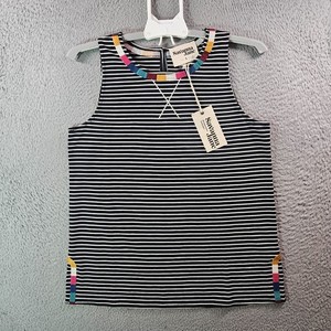 NUEVA Camiseta Top Savanna Jane Sin Mangas Mujer Pequeña Bordada Blanca Negra Rayas