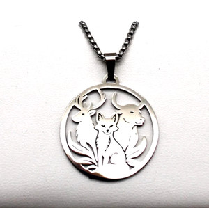 Collar, colgante de zorro, cadena de caja. Diseño propio Please4Me acero inoxidable