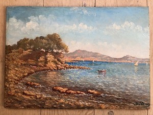 Louis Nattero (1870-1915) - Huile sur panneau - Bord de côte en rade de Toulon
