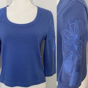 Suéter Top Vintage St. John Tejido Santana Azul Logo Dorado Botones Apliques