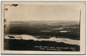 Postal Wyalusing Wisconsin Nelson Dewey Park RPPC puente río 1923