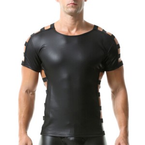 Hombres Camisetas Manga Corta Elástico Empalme Malla Imitación Cuero Top Brillantes Delgadas Camisetas 14,26 EUR