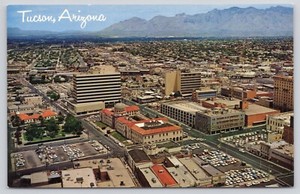Downtown Tucson Arizona AZ Santa Catalina Mountains Aerial View Vintage Postcard