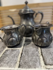 Nuevo Amsterdam Silver Co. #615 - Juego de té de 3 piezas de plato cuádruple