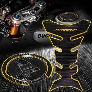 Black Pro Tank Grip Pad+Fuel Cap Cover Panigale 1299/959/899/Monster Chrome Gold