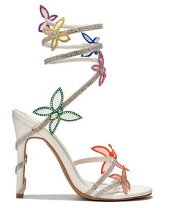 Sandalias para mujer de 11 cm de tacón alto con tacón punta de imitación decoración de flores