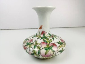 Jarrón chino antiguo de porcelana, estampado de melocotón