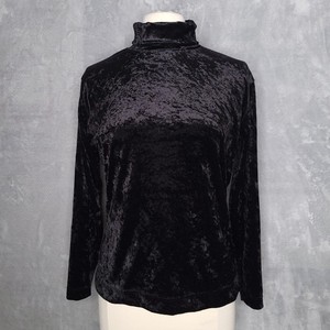 Suéter Vintage Negro Terciopelo Triturado Cuello Alto Talla M Años 90 Ligero