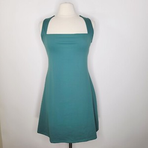 Vestido Atlético QINSEN NUEVO CON ETIQUETAS Verde Talla US 10 Cuello Cuadrado Forrado Retro Pin Up