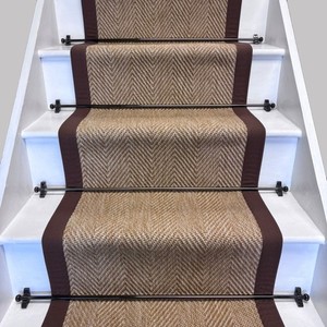 Corredor de escaleras Herringbone Java beige con borde de lana 100 % pura