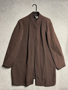 Chaqueta para mujer Eileen Fisher mediana marrón larga abierta frontal mezcla de seda 175 USD 33,48 EUR