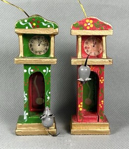 Mini Reloj Abuelo Madera Ratón Adornos Navidad De Colección Juego De 2
