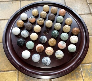 The Bombay Co Juego Solitario de Mármol Bandeja de Madera Canicas de Piedra 1994 13.5"