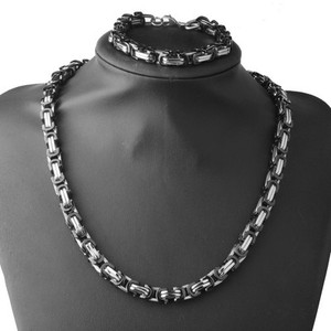 Juego de collar y pulsera de cadena bizantina negra plateada de acero inoxidable para hombre