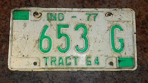 PLACA INDIANA REFLECTANTE BLANCA 1977 DE COLECCIÓN, ""TRACTO 54" (653 G) ¡ENVÍO RÁPIDO!