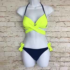 Nuevo sin etiquetas Juego de Bikini Halter con Vendaje Cruzado Criss Marino y Amarillo Neón Talla PEQUEÑA 34,07 EUR