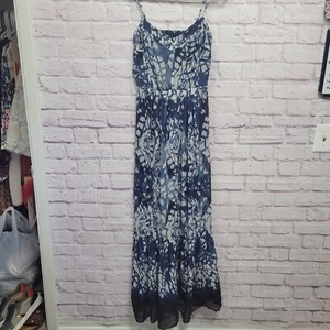 Maxi Vestido Betsey Johnson Azul Blanco Con Volantes en Niveles Correa de Espagueti Talla 6 Forrado