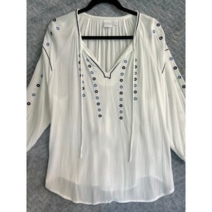 Blusa Campesina SOHO en Blanco con Acento Azul Talla L Country Boho Hippie Gasa