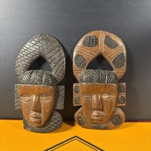 Máscara tribal vintage para decoración de pared de madera tallada a mano de 2