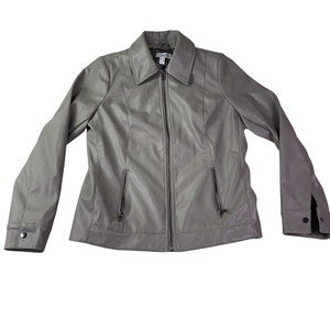 Chaqueta de cuero sintético Denim & Co para mujer XS gris cremallera bolsillos delanteros puños a presión vegana 21,50 EUR