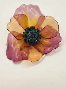 Broche Flor Celulosa Naranja Rosa Púrpura Verde Azul Estrás Centro De Colección Años 60