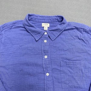 Camisa J.Crew Mujer XL Azul Arrugado Algodón Botón Frontal Manga Larga Bolsillo