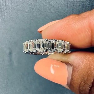 14k White Gold Plated 6.50 CTW Emerald Cut Moissanite Full Eternity Band Wedding 246,46 EUR296,93 EUR
