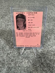 Tarjeta rosa rara 1961 7-11 Whitey Herzog #14 Kansas City Athletics Seven Eleven