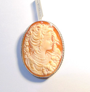 CAMMEO CIONDOLO / SPILLA CONCHIGLIA & ARGENTO 925 LAVORAZIONE A MANO 35 mm