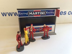 Figuras escala 1:32 x32 con bases y Castrol Pit Hut para Scalextric Carrera