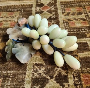 De colección MCM Jade y Ónix Verde Uvas y Racimo de Hojas Escultura Decorativa Fruta