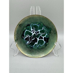 Plato Baratija MCM Verde Remolino Esmaltado Cobre Plato De Colección Mediados de Siglo Moderno