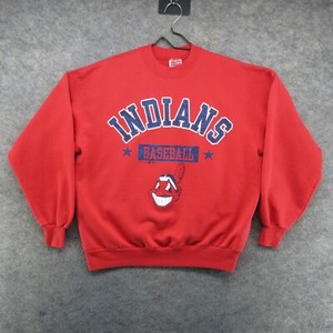 Sudadera De Colección Cleveland Indians Para Hombres XL Roja Chief Wahoo Cuello Redondo MLB Desteñida Años 90