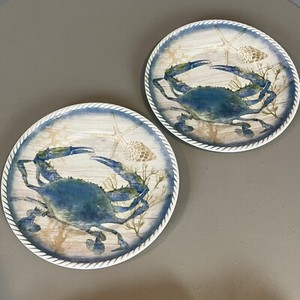 2 platos de cena de melamina cangrejo azul tema náutico playa por Cynthia Rowley