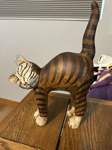 VINTAGE PRETTY HANDMADE FOLK ART WOODEN CAT STATUE WITH FREE SHIPPING