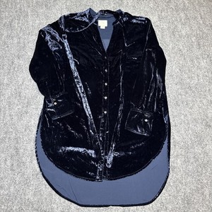 Camisa Maeve by Anthropologie Azul Marino Terciopelo Abotonada Calce Relajado Talla 8