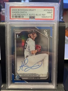 Bowman Chrome Hagen Smith 1st Blue Wave Auto 2024/150 White Sox #CPA-HS PSA 9